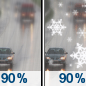 Temperature: 59°F Wind Speed: 5 to 28 mph Wind Direction: SSW Forecast: Rain and patchy fog before noon, then rain and a slight chance of thunderstorms between noon and 5pm, then a chance of sleet. Cloudy. High near 59, with temperatures falling to around 33 in the afternoon. South southwest wind 5 to 28 mph, with gusts as high as 41 mph. Chance of precipitation is 90%. New rainfall amounts between a half and three quarters of an inch possible. |