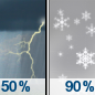 Temperature: 56°F Wind Speed: 6 to 14 mph Wind Direction: WNW Forecast: A chance of rain showers before 9am, then showers and thunderstorms likely between 9am and 3pm, then snow showers. Cloudy. High near 56, with temperatures falling to around 41 in the afternoon. West northwest wind 6 to 14 mph. Chance of precipitation is 90%. |
