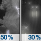 Temperature: 53°F Wind Speed: 3 to 7 mph Wind Direction: S Forecast: Rain likely. Mostly cloudy, with a low around 53. |