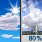 Temperature: 77°F Wind Speed: 10 to 20 mph Wind Direction: S Forecast: Showers and thunderstorms after 1pm. Mostly sunny, with a high near 77. South wind 10 to 20 mph, with gusts as high as 35 mph. Chance of precipitation is 80%. New rainfall amounts between a quarter and half of an inch possible. |