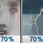 Temperature: 67°F Wind Speed: 3 to 7 mph Wind Direction: S Forecast: Rain likely before 1pm, then rain likely and a slight chance of thunderstorms. Mostly cloudy, with a high near 67. South wind 3 to 7 mph. Chance of precipitation is 70%. New rainfall amounts between a tenth and quarter of an inch possible. |