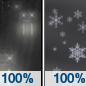 Temperature: 25°F Wind Speed: 16 mph Wind Direction: SW Forecast: Snow. Cloudy, with a low around 25. Chance of precipitation is 80%. New snow accumulation of less than one inch possible. |