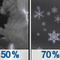Temperature: 45°F Wind Speed: 3 to 7 mph Wind Direction: SSE Forecast: Rain and snow showers likely before 7am, then rain and snow. Mostly cloudy, with a high near 45. Chance of precipitation is 80%. |