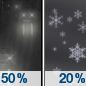 Temperature: 34°F Wind Speed: 1 to 10 mph Wind Direction: WSW Forecast: A chance of rain before 1am, then a slight chance of rain and snow between 1am and 4am. Mostly cloudy, with a low around 34. Chance of precipitation is 50%. New rainfall amounts less than a tenth of an inch possible. |