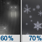 Temperature: 43°F Wind Speed: 7 to 10 mph Wind Direction: S Forecast: Rain and snow likely. Mostly cloudy, with a high near 43. Chance of precipitation is 70%. |