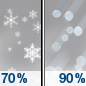 Temperature: 26°F Wind Speed: 10 to 17 mph Wind Direction: NE Forecast: Snow likely. Cloudy, with a low around 26. Chance of precipitation is 60%. |