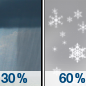 Temperature: 26°F Wind Speed: 12 mph Wind Direction: NE Forecast: A slight chance of snow showers before midnight. Mostly cloudy, with a low around 26. |