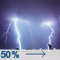 Temperature: 45°F Wind Speed: 5 to 10 mph Wind Direction: NNE Forecast: Showers and thunderstorms likely. Mostly cloudy, with a low around 45. North northeast wind 5 to 10 mph. Chance of precipitation is 50%. New rainfall amounts between a quarter and half of an inch possible. |