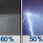 Temperature: 54°F Wind Speed: 5 to 9 mph Wind Direction: SW Forecast: Rain showers likely before 1am, then a chance of showers and thunderstorms. Mostly cloudy, with a low around 54. Chance of precipitation is 60%. |