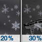 Temperature: 35°F Wind Speed: 7 mph Wind Direction: SW Forecast: A slight chance of snow after 7am. Mostly cloudy, with a high near 35. |