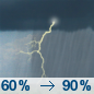Temperature: 69°F Wind Speed: 7 to 15 mph Wind Direction: SW Forecast: Rain and a chance of thunderstorms. Cloudy. High near 69, with temperatures falling to around 59 in the afternoon. Southwest wind 7 to 15 mph. Chance of precipitation is 90%. |