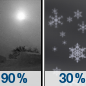 Temperature: 27°F Wind Speed: 10 mph Wind Direction: W Forecast: Snow showers after 7am. Cloudy, with a high near 27. West wind around 10 mph. Chance of precipitation is 80%. New snow accumulation of 1 to 3 inches possible. |