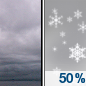 Temperature: 31°F Wind Speed: 15 mph Wind Direction: NW Forecast: A chance of snow after noon. Cloudy, with a high near 31. Northwest wind around 15 mph, with gusts as high as 25 mph. Chance of precipitation is 50%. New snow accumulation of less than one inch possible. |