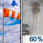 Temperature: 58°F Wind Speed: 14 to 21 mph Wind Direction: SW Forecast: Rain likely after 1pm. Mostly cloudy. High near 58, with temperatures falling to around 55 in the afternoon. Southwest wind 14 to 21 mph, with gusts as high as 36 mph. Chance of precipitation is 60%. |