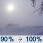 Temperature: 12°F Wind Speed: 8 mph Wind Direction: W Forecast: Snow showers. Mostly cloudy, with a low around 12. West wind around 8 mph. Chance of precipitation is 90%. New snow accumulation of 2 to 4 inches possible. |