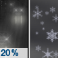 Temperature: 26°F Wind Speed: 13 to 18 mph Wind Direction: NW Forecast: A slight chance of rain before 10pm, then a chance of snow showers between midnight and 5am. Mostly clear, with a low around 26. Northwest wind 13 to 18 mph, with gusts as high as 35 mph. Chance of precipitation is 20%. |