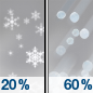Temperature: 37°F Wind Speed: 15 mph Wind Direction: W Forecast: A chance of snow before 1pm. Mostly sunny, with a high near 37. Chance of precipitation is 40%. |
