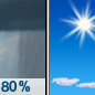 Temperature: 84°F Wind Speed: 15 mph Wind Direction: S Forecast: A slight chance of showers and thunderstorms. Mostly sunny, with a high near 84. South wind around 15 mph, with gusts as high as 20 mph. Chance of precipitation is 20%. |