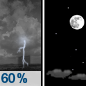Temperature: 52°F Wind Speed: 6 mph Wind Direction: NW Forecast: Showers and thunderstorms likely before 8pm. Mostly clear, with a low around 52. Chance of precipitation is 60%. |