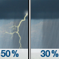 Temperature: 42°F Wind Speed: 10 to 15 mph Wind Direction: SW Forecast: Showers and thunderstorms before 10pm, then showers and thunderstorms. Mostly cloudy. Low around 42, with temperatures rising to around 51 overnight. Southwest wind 10 to 15 mph. Chance of precipitation is 90%. New rainfall amounts between a half and three quarters of an inch possible. |