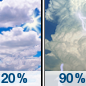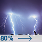 Temperature: 80°F Wind Speed: 0 to 10 mph Wind Direction: WSW Forecast: A chance of showers and thunderstorms between 1pm and 4pm, then showers and thunderstorms. Mostly cloudy. High near 80, with temperatures falling to around 69 in the afternoon. West southwest wind 0 to 10 mph. Chance of precipitation is 90%. New rainfall amounts between a quarter and half of an inch possible. |