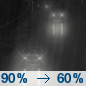 Temperature: 51°F Wind Speed: 2 to 9 mph Wind Direction: S Forecast: A chance of rain before 7pm, then a chance of showers and thunderstorms between 7pm and 4am, then a chance of rain. Mostly cloudy, with a low around 51. |