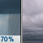 Temperature: 53°F Wind Speed: 10 mph Wind Direction: WSW Forecast: Rain. Cloudy, with a high near 53. Chance of precipitation is 80%. |