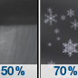Temperature: 39°F Wind Speed: 10 mph Wind Direction: S Forecast: Rain and snow showers likely before 7am, then rain and snow showers likely. Mostly cloudy, with a high near 39. South wind around 10 mph. Chance of precipitation is 70%. |