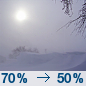 Temperature: 29°F Wind Speed: 14 to 17 mph Wind Direction: W Forecast: Snow showers likely. Mostly cloudy, with a high near 29. Chance of precipitation is 70%. New snow accumulation of less than half an inch possible. |