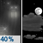 Temperature: 41°F Wind Speed: 6 to 10 mph Wind Direction: S Forecast: A chance of rain. Cloudy, with a low around 41. Chance of precipitation is 50%. |