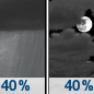 Temperature: 33°F Wind Speed: 10 to 15 mph Wind Direction: NE Forecast: A chance of rain showers. Mostly cloudy, with a low around 33. Chance of precipitation is 40%. |