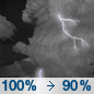 Temperature: 62°F Wind Speed: 14 mph Wind Direction: S Forecast: A slight chance of showers and thunderstorms before 7pm, then a chance of showers and thunderstorms between 7pm and 1am, then a chance of showers and thunderstorms. Mostly cloudy, with a low around 62. |