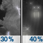 Temperature: 79°F Wind Speed: 5 to 10 mph Wind Direction: NW Forecast: A chance of showers and thunderstorms after 5pm. Partly sunny, with a high near 79. Chance of precipitation is 30%. |