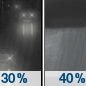 Temperature: 58°F Wind Speed: 7 to 10 mph Wind Direction: S Forecast: A slight chance of rain showers before midnight, then a slight chance of showers and thunderstorms. Mostly cloudy, with a low around 58. South wind 7 to 10 mph. Chance of precipitation is 20%. |