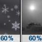 Temperature: 37°F Wind Speed: 5 to 15 mph Wind Direction: SSE Forecast: A chance of snow after 11am. Mostly sunny, with a high near 37. Chance of precipitation is 30%. |