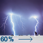 Temperature: 47°F Wind Speed: 5 to 10 mph Wind Direction: N Forecast: Showers and thunderstorms. Mostly cloudy, with a low around 47. North wind 5 to 10 mph. Chance of precipitation is 60%. New rainfall amounts between a tenth and quarter of an inch possible. |