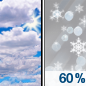 Temperature: 27°F Wind Speed: 13 mph Wind Direction: W Forecast: Rain likely before 7pm. Mostly cloudy, with a low around 27. Chance of precipitation is 60%. |
