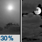 Temperature: 3°F Wind Speed: 10 to 15 mph Wind Direction: W Forecast: Mostly clear, with a low around 3. West wind 10 to 15 mph. |