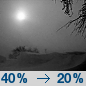Temperature: -10°F Wind Speed: 9 to 14 mph Wind Direction: NW Forecast: A slight chance of snow. Mostly cloudy, with a low around -10. Wind chill values as low as -25. Northwest wind 9 to 14 mph, with gusts as high as 20 mph. Chance of precipitation is 20%. New snow accumulation of less than half an inch possible. |