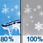 Temperature: 28°F Wind Speed: 8 mph Wind Direction: S Forecast: Rain and snow before 7pm, then rain and snow likely. Mostly cloudy, with a low around 28. Chance of precipitation is 80%. |