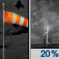 Temperature: 83°F Wind Speed: 16 to 23 mph Wind Direction: S Forecast: A slight chance of showers and thunderstorms. Partly sunny, with a high near 83. Chance of precipitation is 20%. |