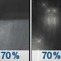 Temperature: 32°F Wind Speed: 5 mph Wind Direction: W Forecast: Rain showers likely before 1am, then rain likely. Mostly cloudy, with a low around 32. Chance of precipitation is 70%. |
