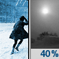 Temperature: 29°F Wind Speed: 1 to 5 mph Wind Direction: SSW Forecast: A chance of snow. Mostly cloudy, with a high near 29. Chance of precipitation is 40%. |