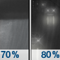 Temperature: 29°F Wind Speed: 1 to 5 mph Wind Direction: W Forecast: Rain showers likely before 1am, then rain. Mostly cloudy, with a low around 29. Chance of precipitation is 80%. |