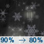 Temperature: 21°F Wind Speed: 9 to 14 mph Wind Direction: W Forecast: Mostly cloudy, with a low around 21. |