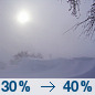 Temperature: 44°F Wind Speed: 5 to 16 mph Wind Direction: NW Forecast: A slight chance of snow showers after noon. Partly sunny, with a high near 44. Northwest wind 5 to 16 mph, with gusts as high as 24 mph. Chance of precipitation is 20%. |