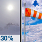 Temperature: 30°F Wind Speed: 10 to 15 mph Wind Direction: W Forecast: Snow showers likely. Mostly cloudy, with a high near 30. West wind 10 to 15 mph, with gusts as high as 28 mph. Chance of precipitation is 70%. New snow accumulation of 1 to 2 inches possible. |