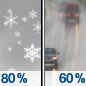Temperature: 39°F Wind Speed: 5 to 10 mph Wind Direction: SW Forecast: Snow before 8am, then rain likely. Mostly cloudy, with a high near 39. Chance of precipitation is 80%. |