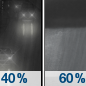 Temperature: 44°F Wind Speed: 6 to 10 mph Wind Direction: W Forecast: Showers and thunderstorms. Cloudy, with a low around 44. Chance of precipitation is 90%. |
