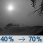 Temperature: 13°F Wind Speed: 7 mph Wind Direction: W Forecast: Snow showers likely. Mostly cloudy, with a low around 13. Chance of precipitation is 70%. |